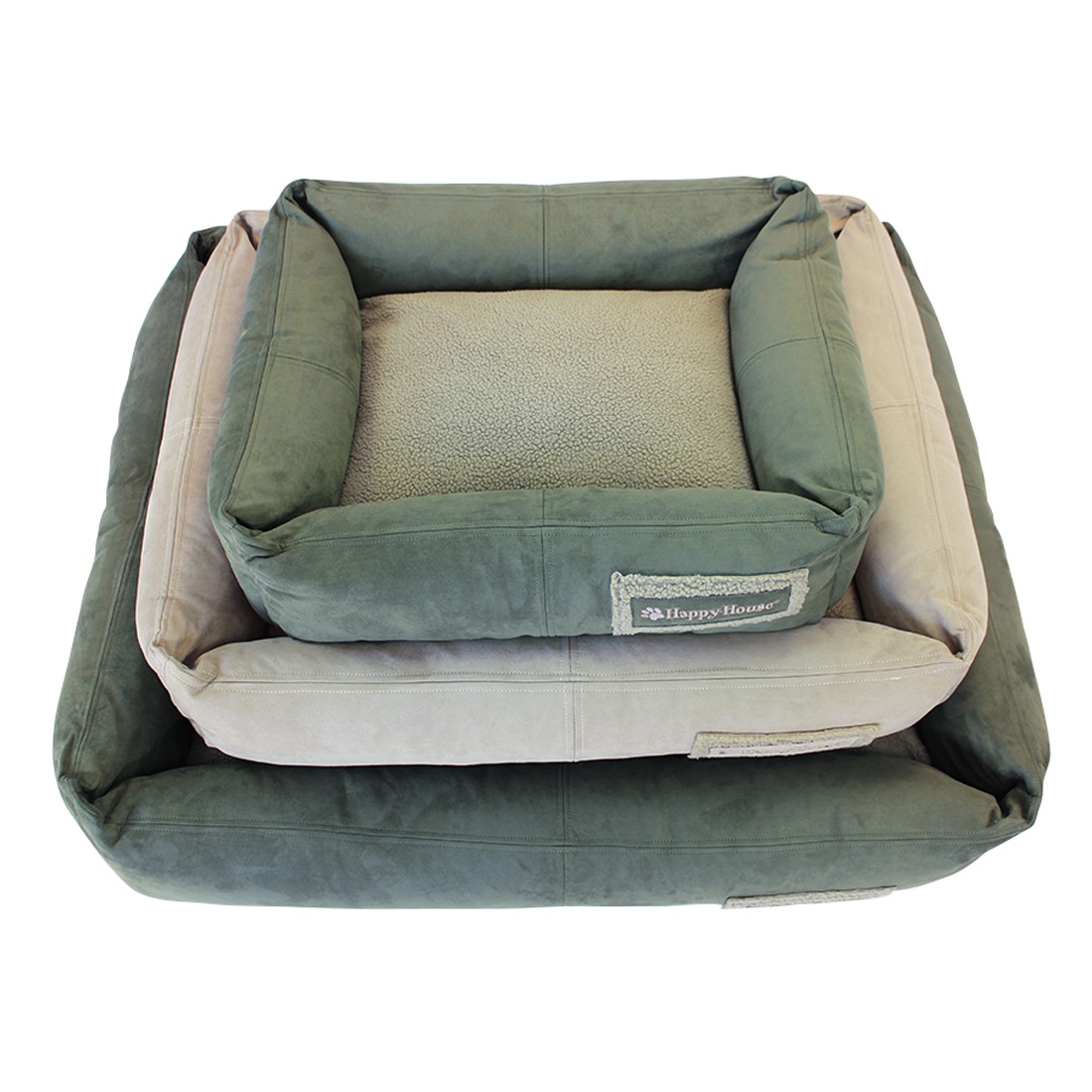 Give your dog the ultimate in comfort with the Suede Basket from the new Happy-House Suede Collection. Available in stylish green (sizes S to XL)