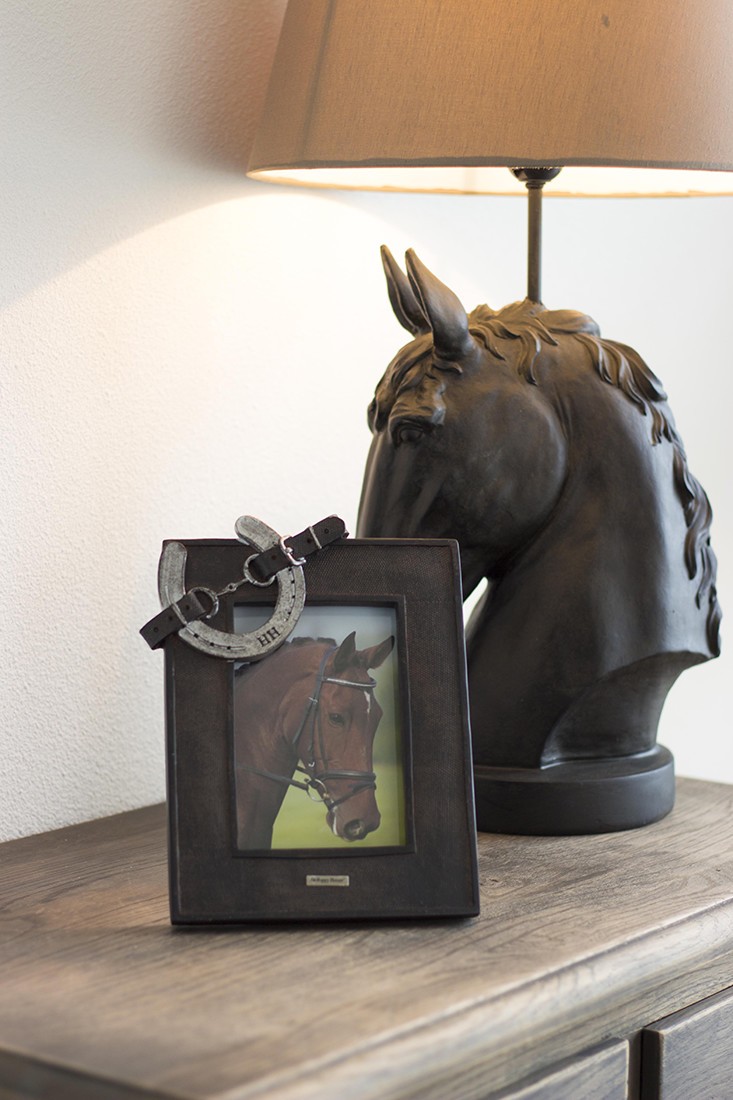 Vos meilleurs souvenirs avec votre cheval méritent une belle place au mur ou sur votre buffet. Ce cadre photo cheval a de jolis détails, comme le fer à cheval et la ceinture avec mors. Un must have pour tous les amis des chevaux.