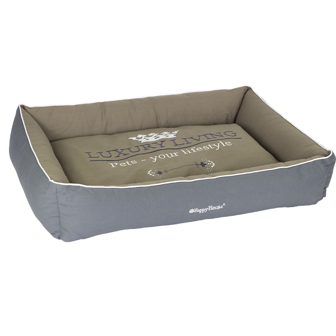 Un panier souple avec des côtés bien rembourrés, très confortable pour votre chien. La broderie et l'imprimé au milieu du panier vous donnent la touche 'Luxury Living'. En raison des nombreuses couleurs et tailles disponibles, il y a toujours un panier qui s'accordera à votre intérieur. Bon à savoir également : l'ensemble de la housse est lavable à 30 degrés, grâce au rembourrage amovible.